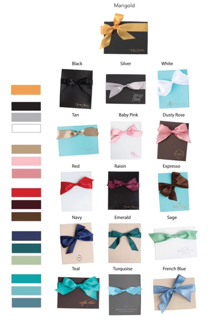 Double-sided satin finish ribbon is available is 1.5" or 7/8" sizes.
